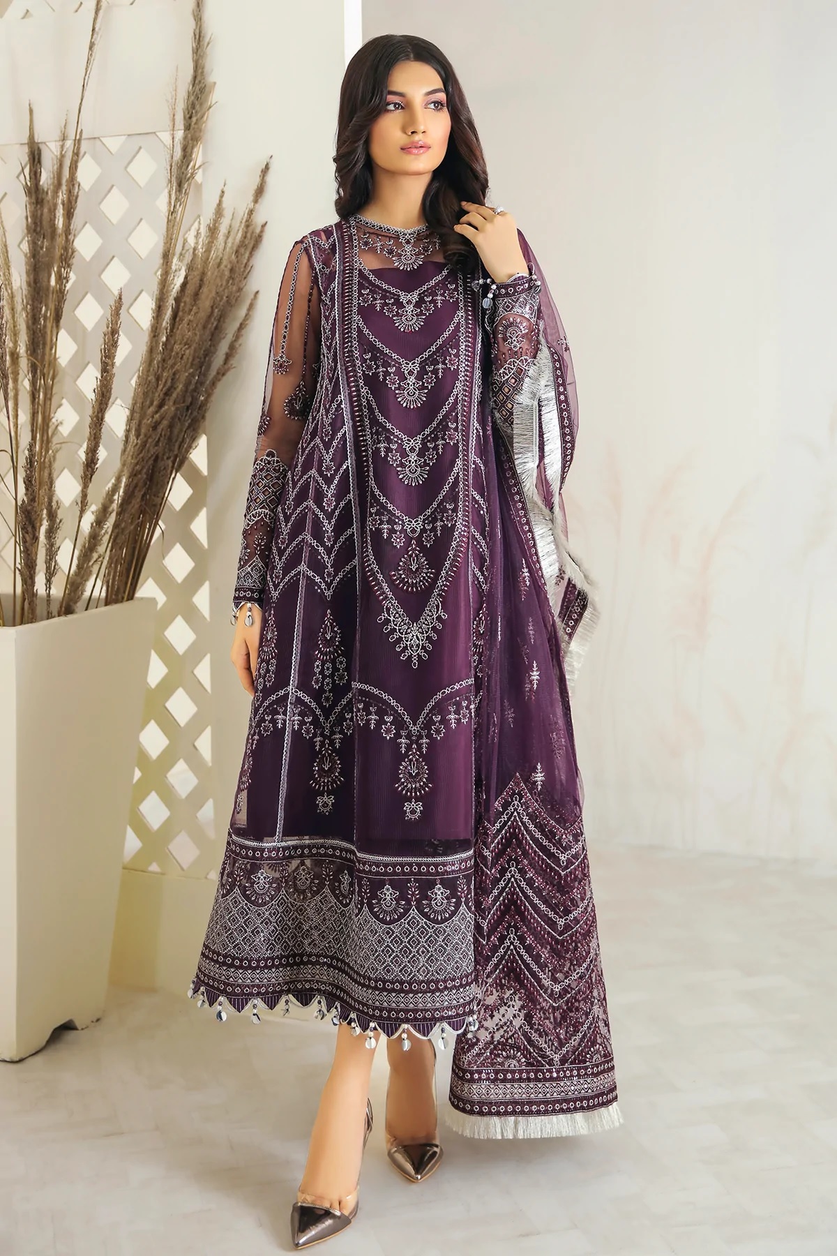 • Embroidered Net Front Panel