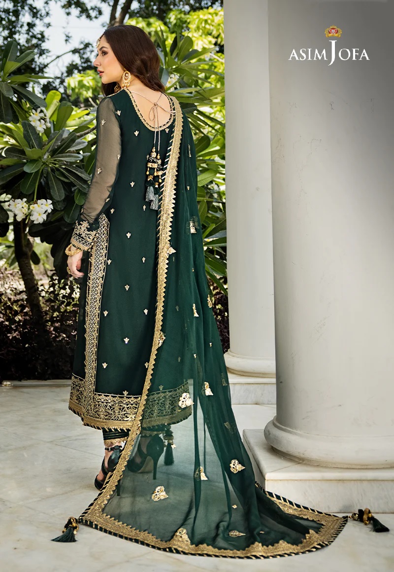 • Ignite your inner radiance as Hania Aamir takes center stage, embodying the essence of regal elegance in this enchanting ensemble. This design crafted on chiffon, bathed in the captivating hue of castleton green, it glistens with golden sequins and intricately embroidered zari with threadwork, casting a spell of allure. With embroidered front, back, and sleeves, adorned with exquisite craftsmanship, it exudes regal charm. Illuminate the world with your celestial radiance and let your inner star shine bright.