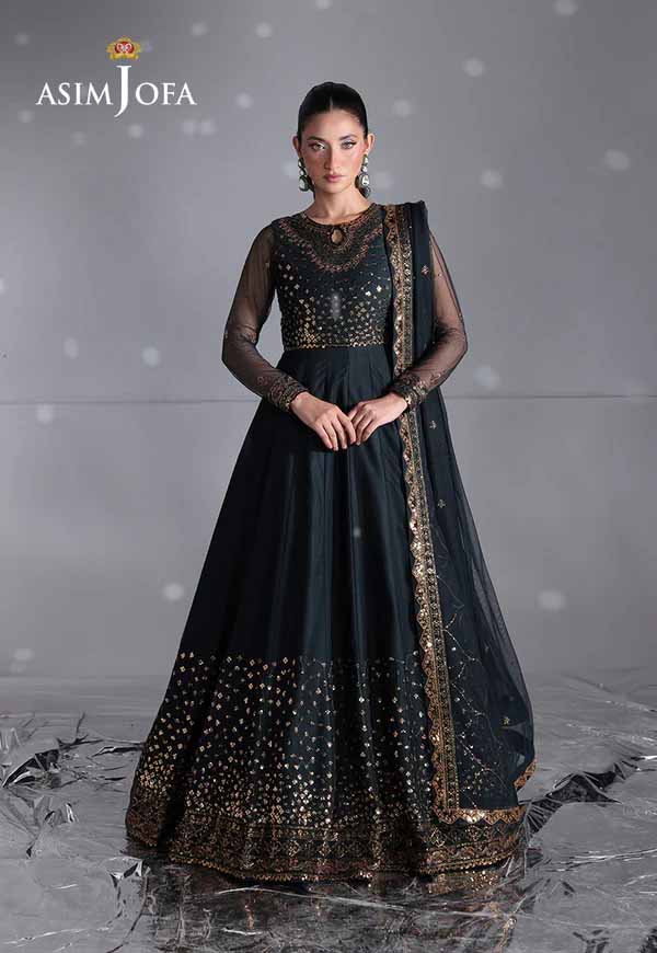 - A luminous vision in motion, this bottle green peshwas is a sparkling masterpiece crafted for the spotlight. The sequined bodice glistens like a constellation, flowing into voluminous kalis where embroidery shimmers along the hem and trails upward like fireflies in flight. Adorned with antique gold 5mm and light gold cupped sequins, rust and beige threadwork, and rich two-toned antique gold zari, every detail captures the magic of movement and light. Paired with a beautifully embroidered dupatta, this ensemble is an ode to grandeur—for the woman who doesn’t just arrive, she dazzles.