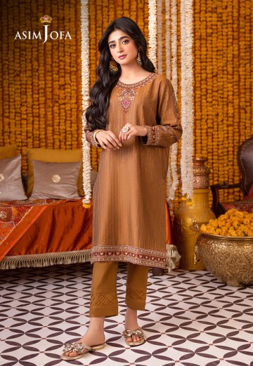 • Elevate your style with this brown ensemble, where intricate embroidery transforms it into a piece of wearable art.