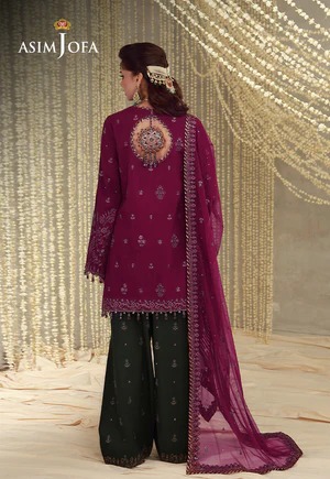 • Evoking the beauty of a blooming garden under festival lights, this magenta ensemble is alive with color and radiance. The shirt becomes a canvas of lavish embroidery, where green and pink threads intertwine amidst accents of light gold zari and sequins, creating a vibrant yet refined texture. The contrasting green trouser grounds the composition with its shade and subtle embroidered motifs, offering a rich counterpoint that enhances the brilliance above. Draped with a gorgeously embroidered dupatta, the look reaches its full expression, layered, luminous, and undeniably captivating.