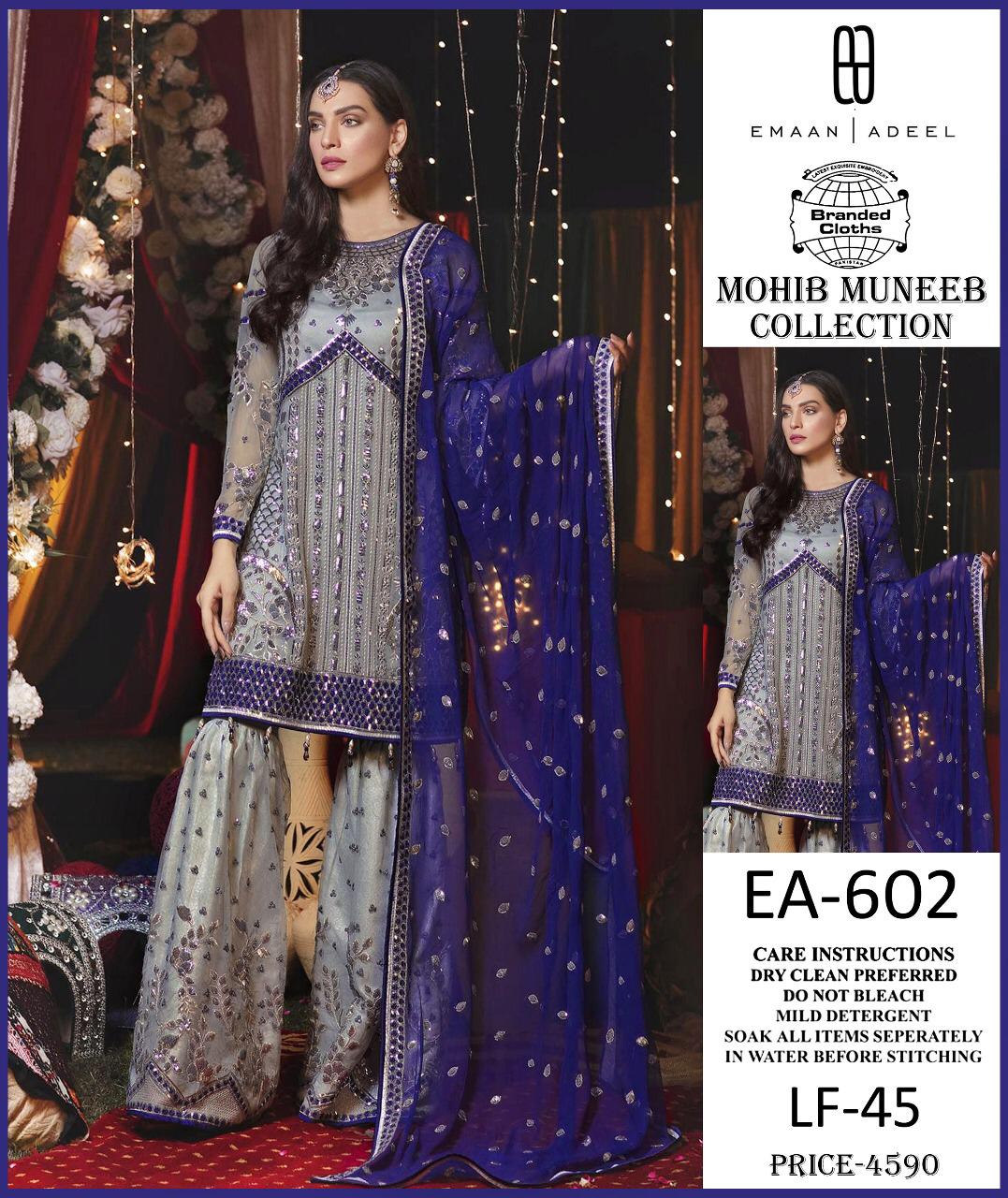 • EMAAN ADEEL LINEN 3pcs with embroidery front, sleeves and Embroidery trouser available now