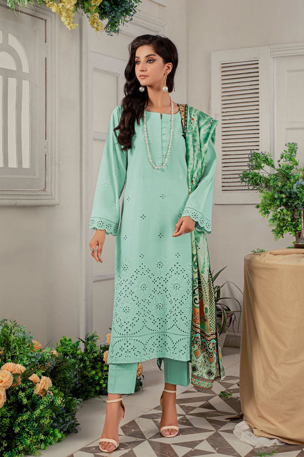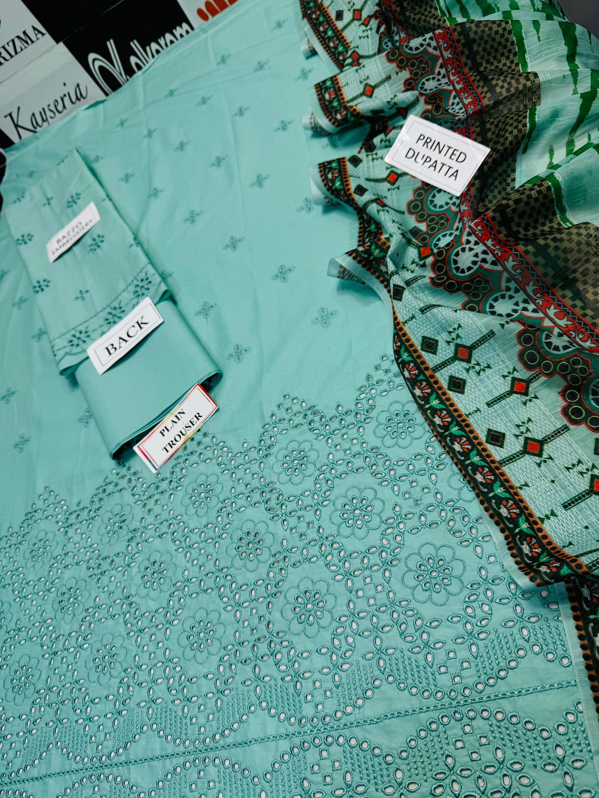 • Jazmin Lawn 3pcs With Printed Shafoon Dupatta Embroidery Trouser Available Now