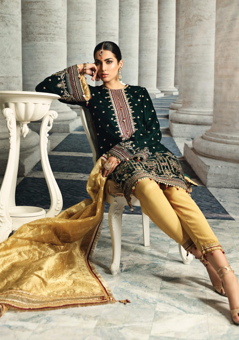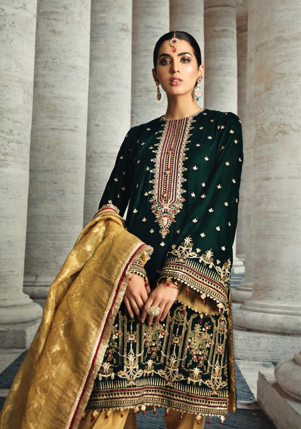 • Banarsi and embroidered net dupatta