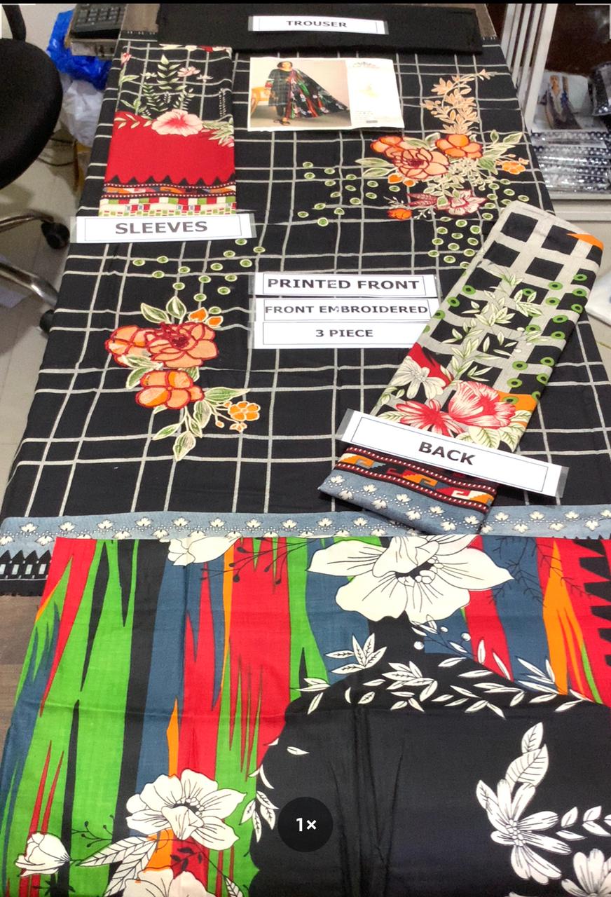 • Limelight LINEN 3PCS WITH DOUBLE HEAD EMBROIDERY ON FRONT WITH PRINTED LINEN SHAWL