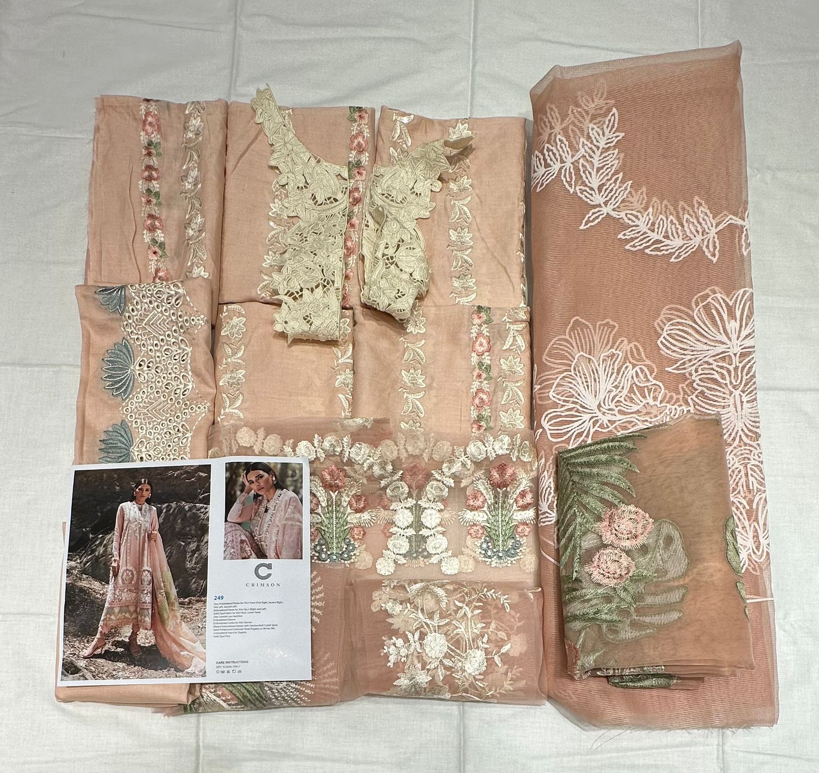 • • 2 meters Ghaara Embroidered Daman with Handworked Crystal Spray