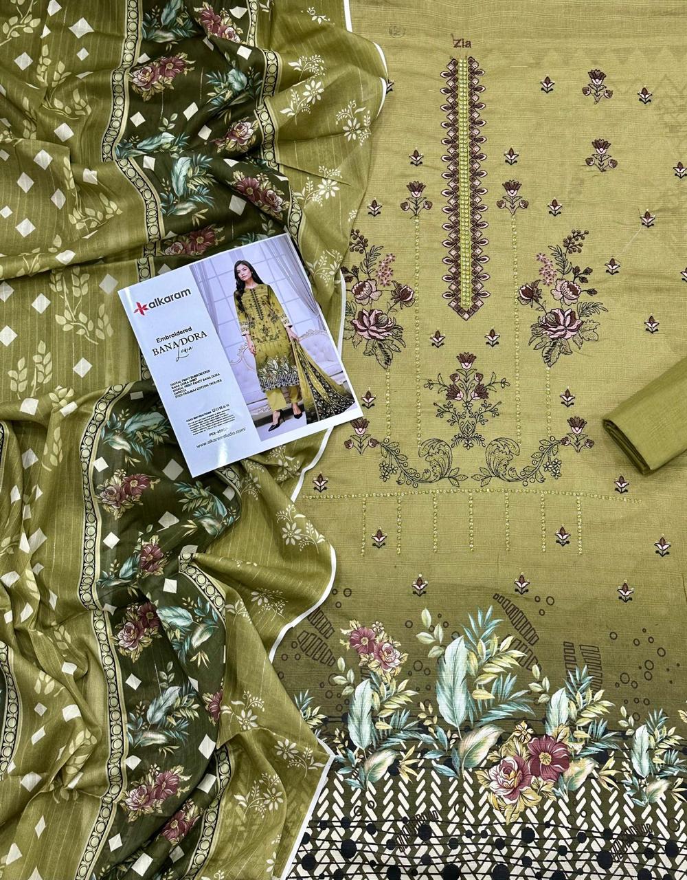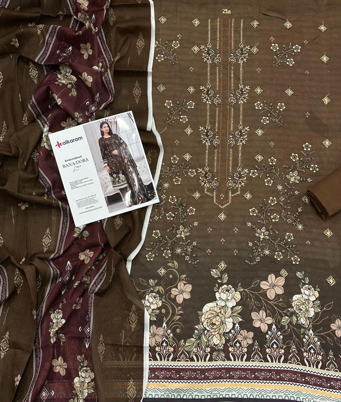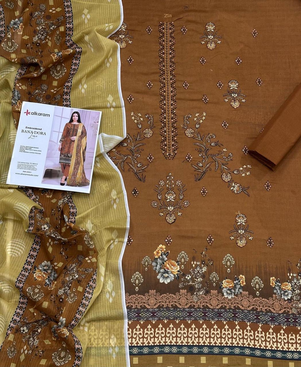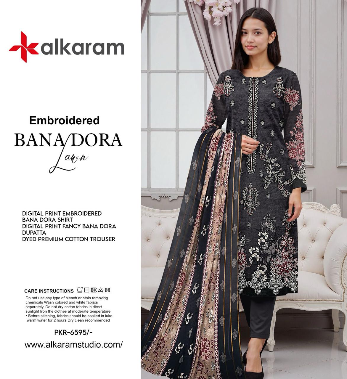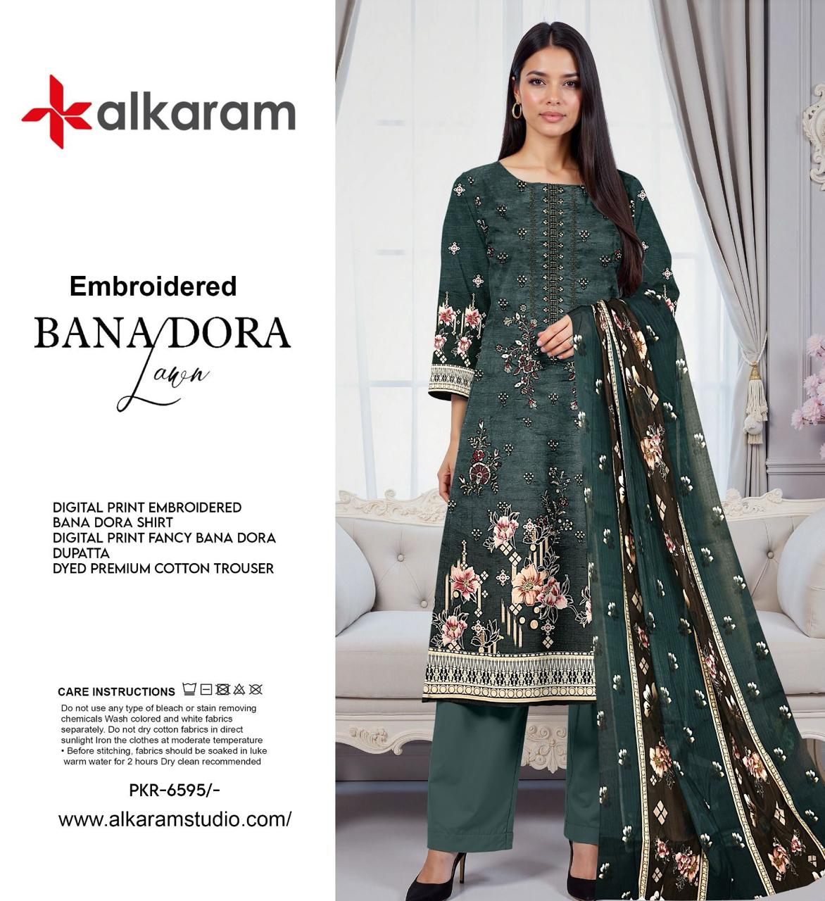 • AL KARAM COLLECTION 2025 FABRIC LAWN DOUBLE BANA DORA SHIRT HEAVY EMBROIDERED DYED TROUSER FANCY SHAWL