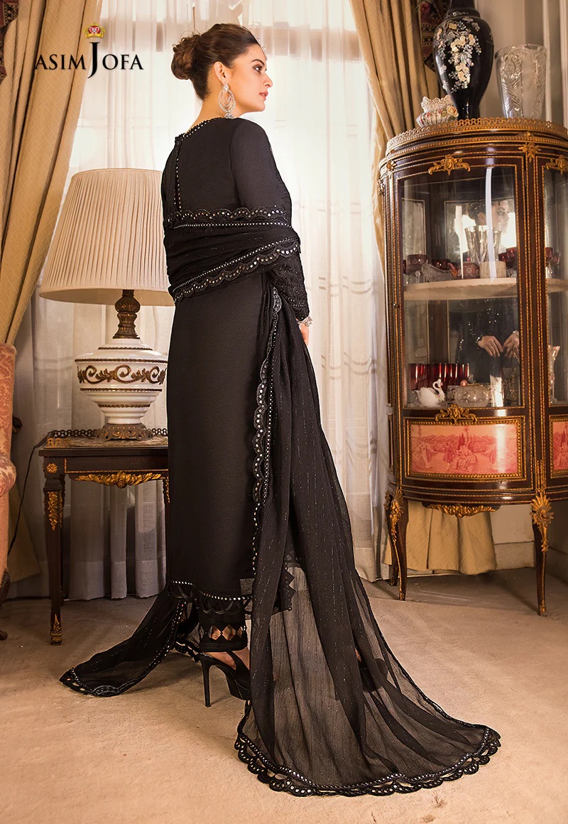 • Black is totally Minal’s color, she looks stunning dressed in this outfit. The shirt is endowed with 7mm sequins work reminiscent of traditional mirror embroidery. It comes with solid dyed pants and zari lined chiffon dupatta.