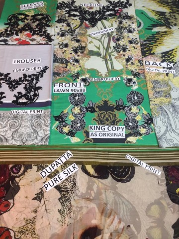 • KING REPLICA "ASIFA & NABEEL ARTICLE #AMELIA" PURE SILK DIGITAL PRINTED DUPATA. DIGITAL PRINTED FRONT AND BACK. DIGITAL PRINTED SLEEVES. EMBROIDERED NECKLINE FOR FRONT. 6 EMBROIDERED PATCHES FOR SHIRT FRONT. 2 EMBROIDERED PATCHES FOR SLEEVES. COTTON TROUSER AND 2 TROUSER PATCHES