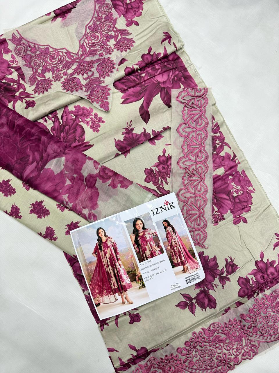 • Iznik lawn 3pcs with embroidery shafoon dupatta and embroidery trouser