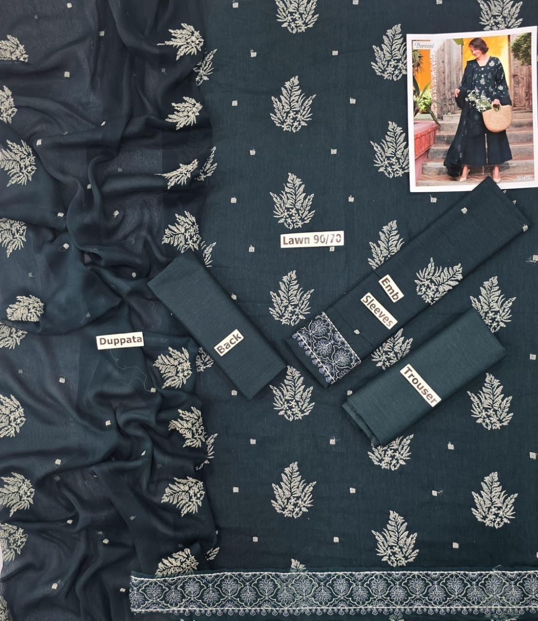• BAREEZE LAWN 3PCS with full front embroidery, sleeves and shafoon dupatta embroidery available now.