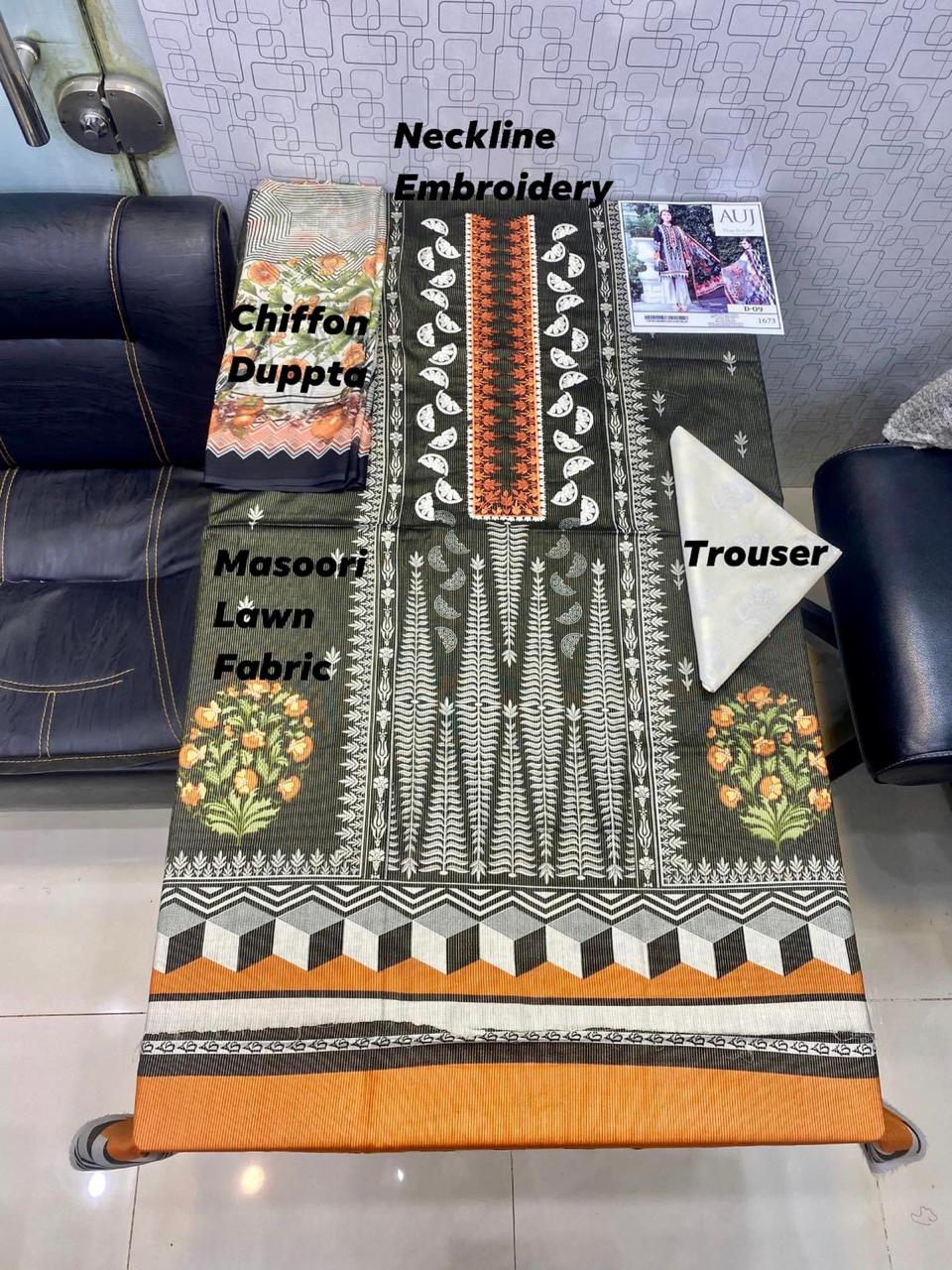 • LAWN MASOORI 3PCS WITH PRINTED SHAFOON DUPATTA