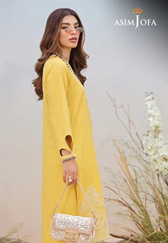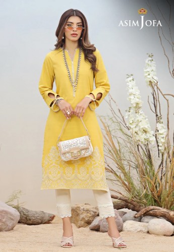 • Sunny yellow self-jacquard straight cut shirt spiced up with heavy embroidered borders and cut-out detail on sleeves adding a unique touch.