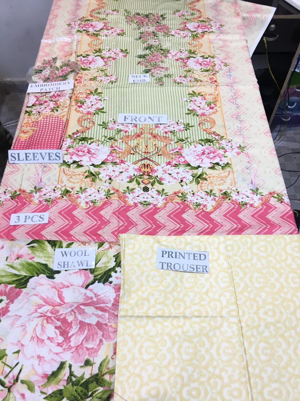• Embroidered Linen Fabric Shirt , Linen Trouser , With Wool Shawl Dupatta