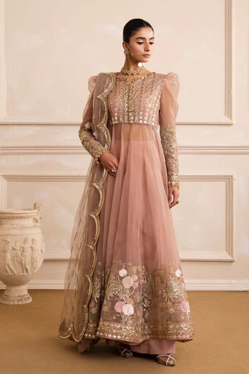 • Shirt: Embroidered Front, Back Kali (Organza) 14 Pieces Embroidered Sleeves (Organza) 1 Pair Embroidered Front, Back Body (Organza) 1 Pair Embroidered Handmade Front Neck (Organza) 1 Pc Embroidered Sleeves Patti (Organza) 1 Yard