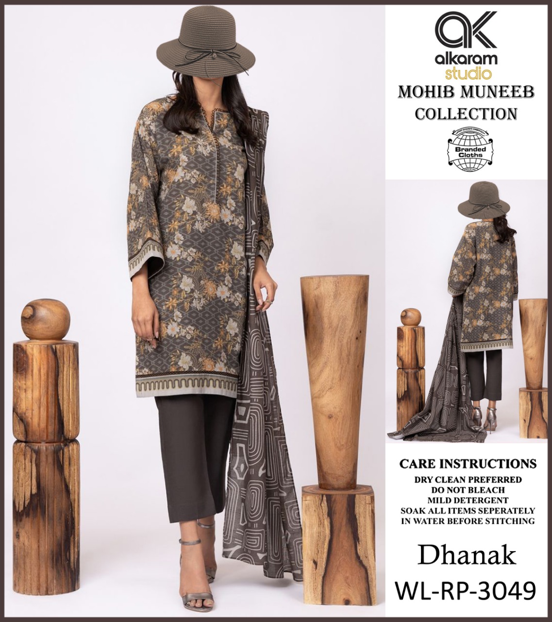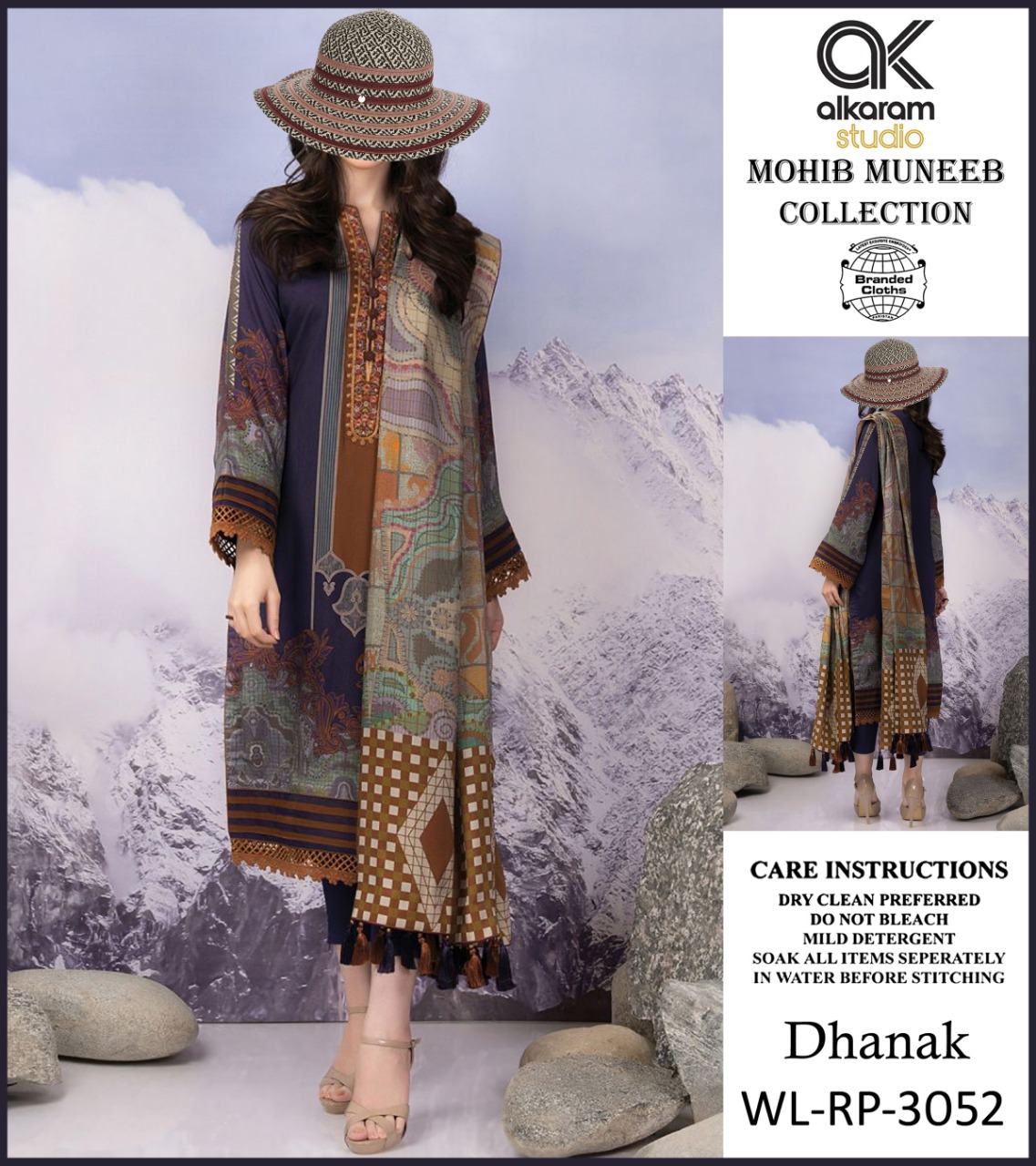 • AL KARAM DHANNAK 3PCS PRINTED WITH PRINTED DHANNAK SHAWL AND PLAIN TROUSERS