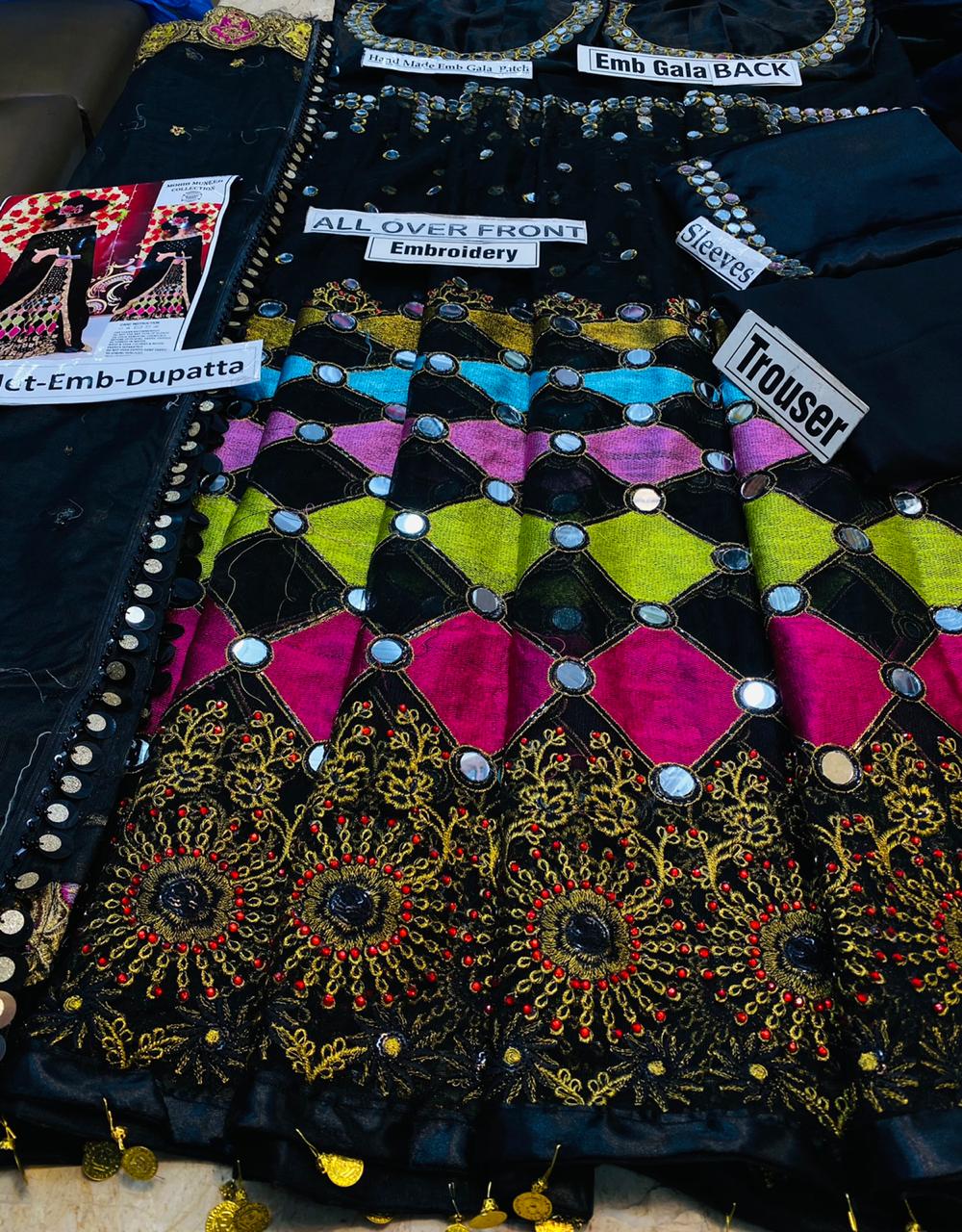 • Front net heavy multi embroidery with sequence work & mirror hand work