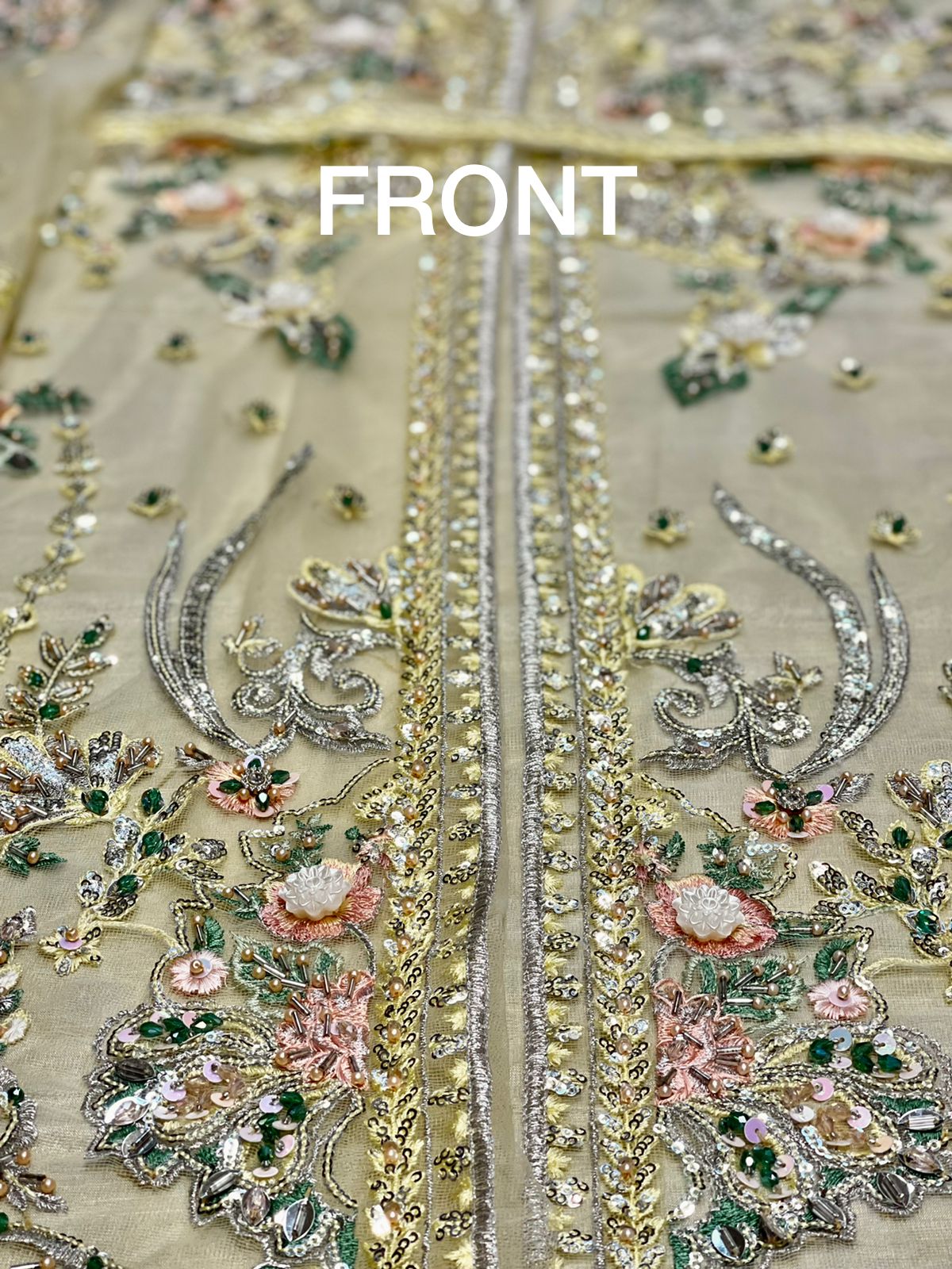 • handwork sleeves and embroidered back