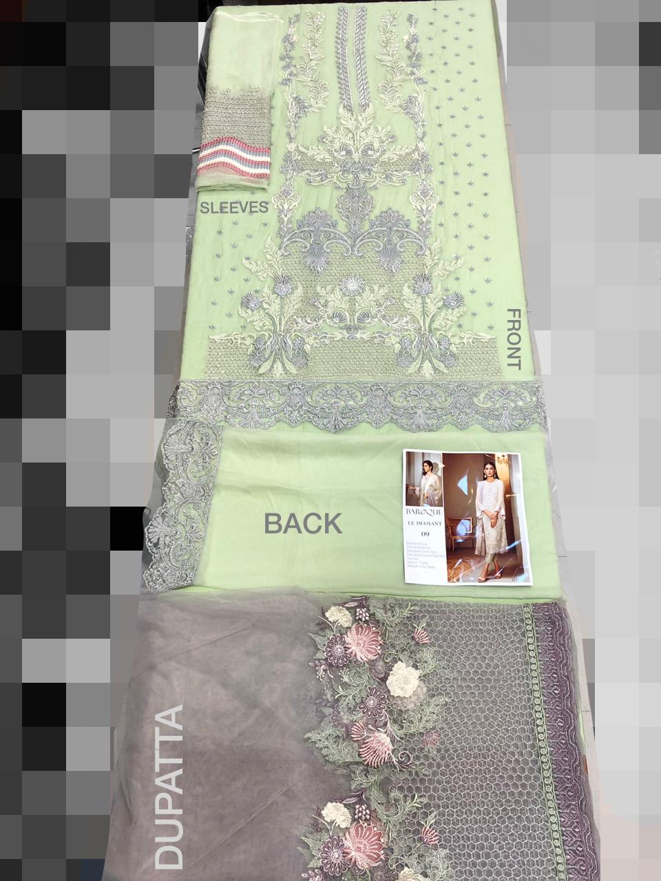 • Baroque Luxury Chiffon Collection Heavy Embroidered With Embroidered Net Dupata 3pcs