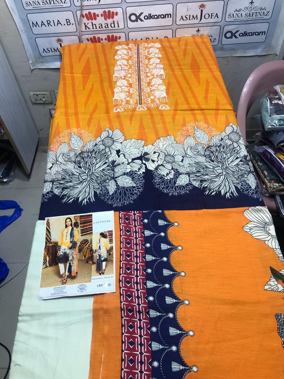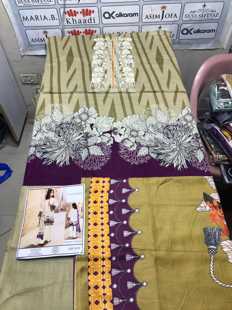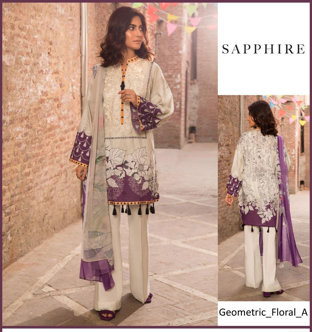 • SAPHIRE KHADAR HEAVY GALA EMBROIDERED, KHADAR TROUSER, PRIMED PASHMINA SHAWL