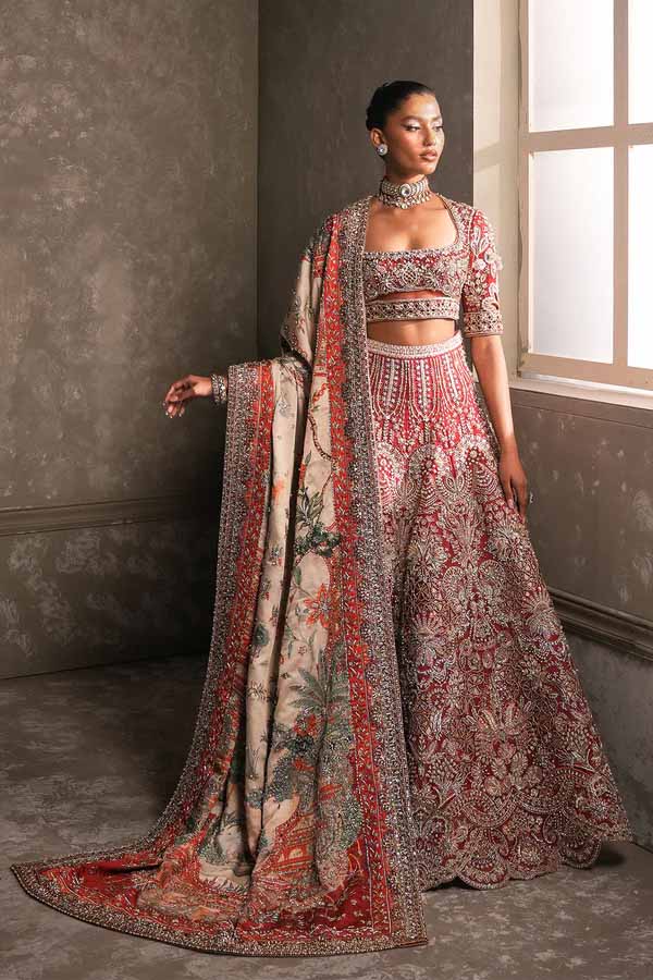 • Crafted from soft organza, seamlessly fused with a luminous gold silk tissue that exudes warmth and regality. Adorned with intricate handwork, it features pure zari, shimmering naqshi, dabka detailing, mirror accents, mukesh, fine cutwork, and dimensional 3D embellishments — each element meticulously placed by master artisans.