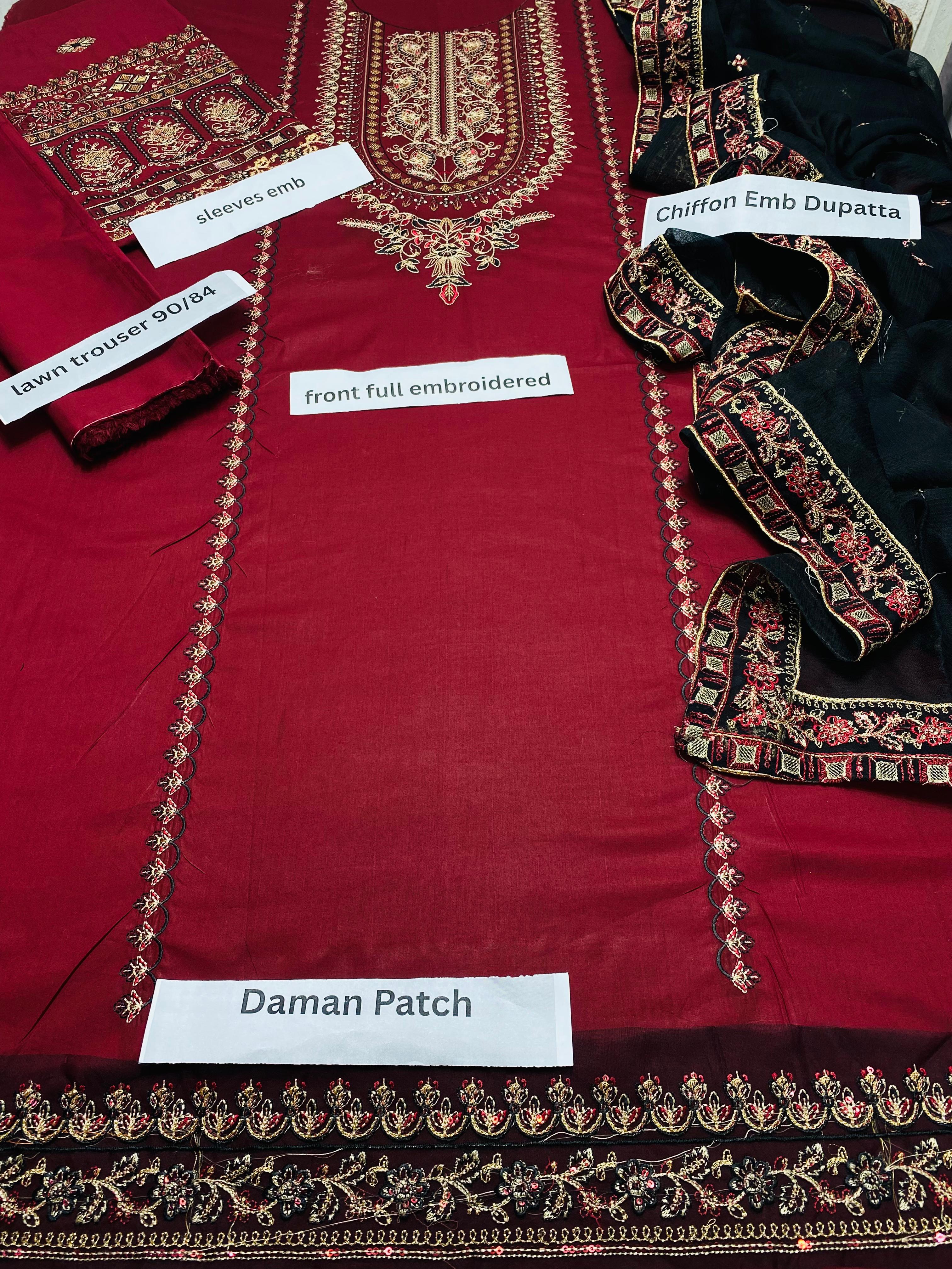 • LAWN 2PCS WITH EMBROIDERY FRONT AND SLEEVES AND PLAIN TROUSERS AVAILABLE NOW.