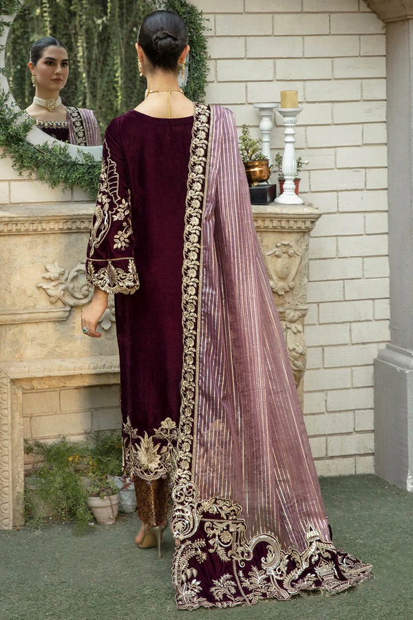 • Lourax organza with embroidered velvet border & pallu for dupatta