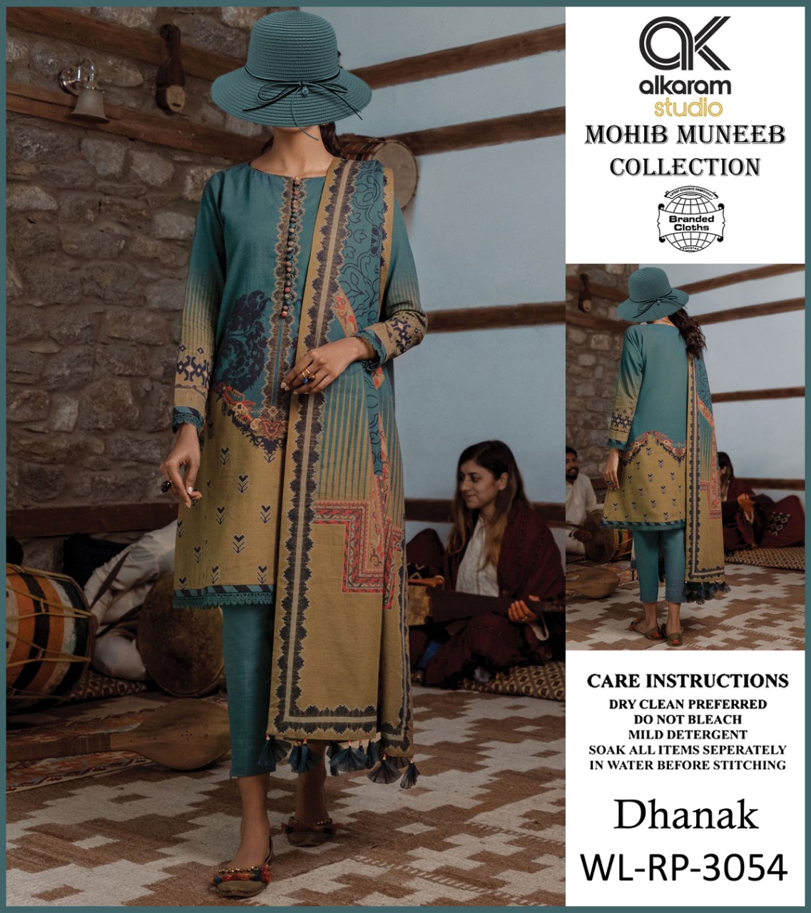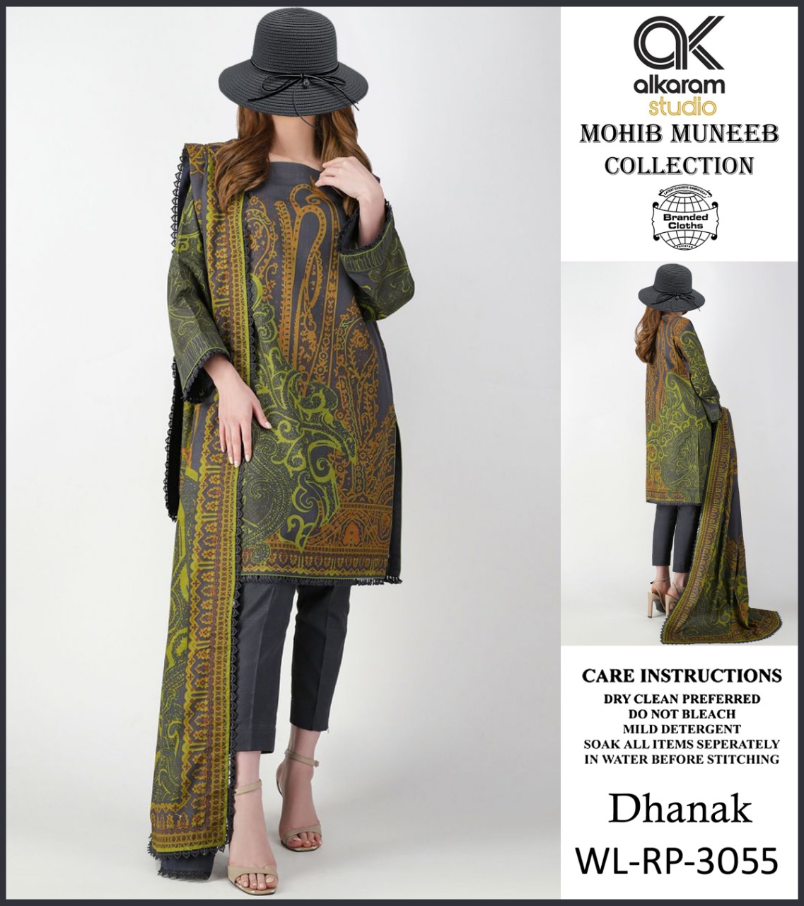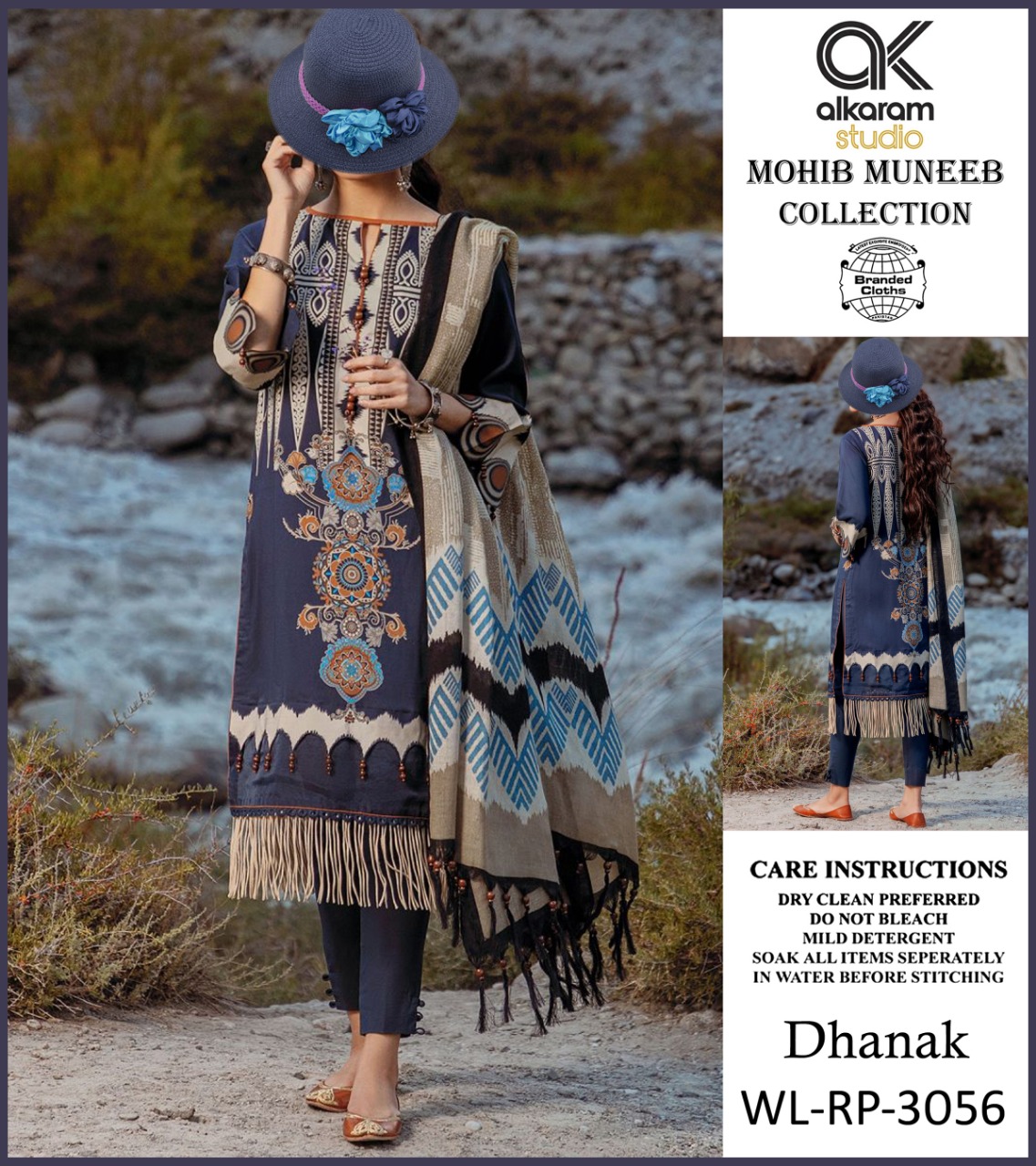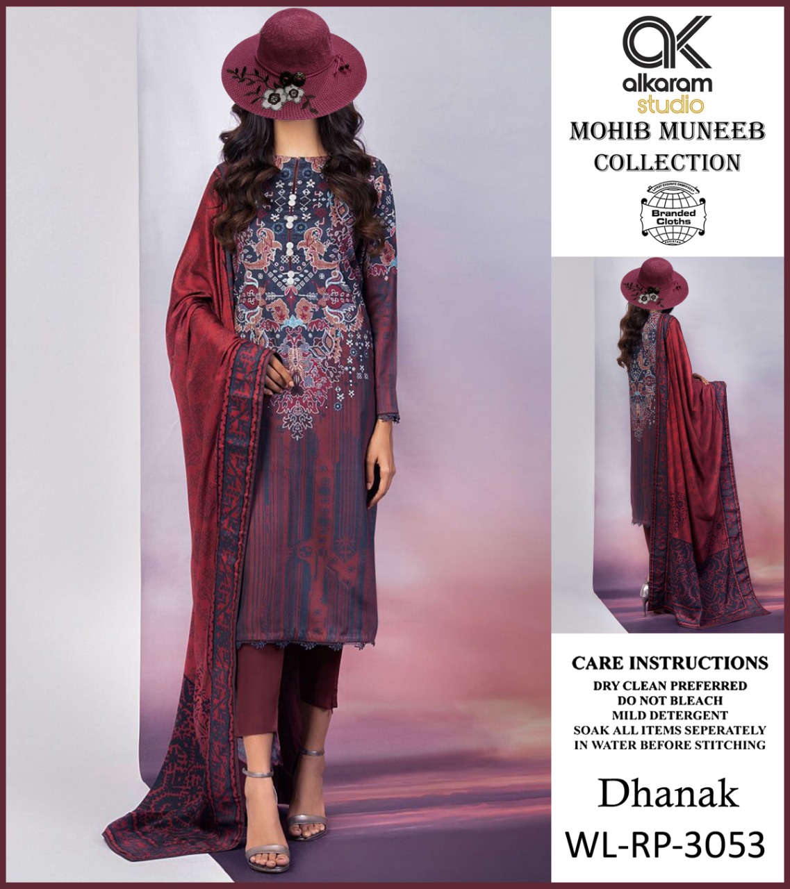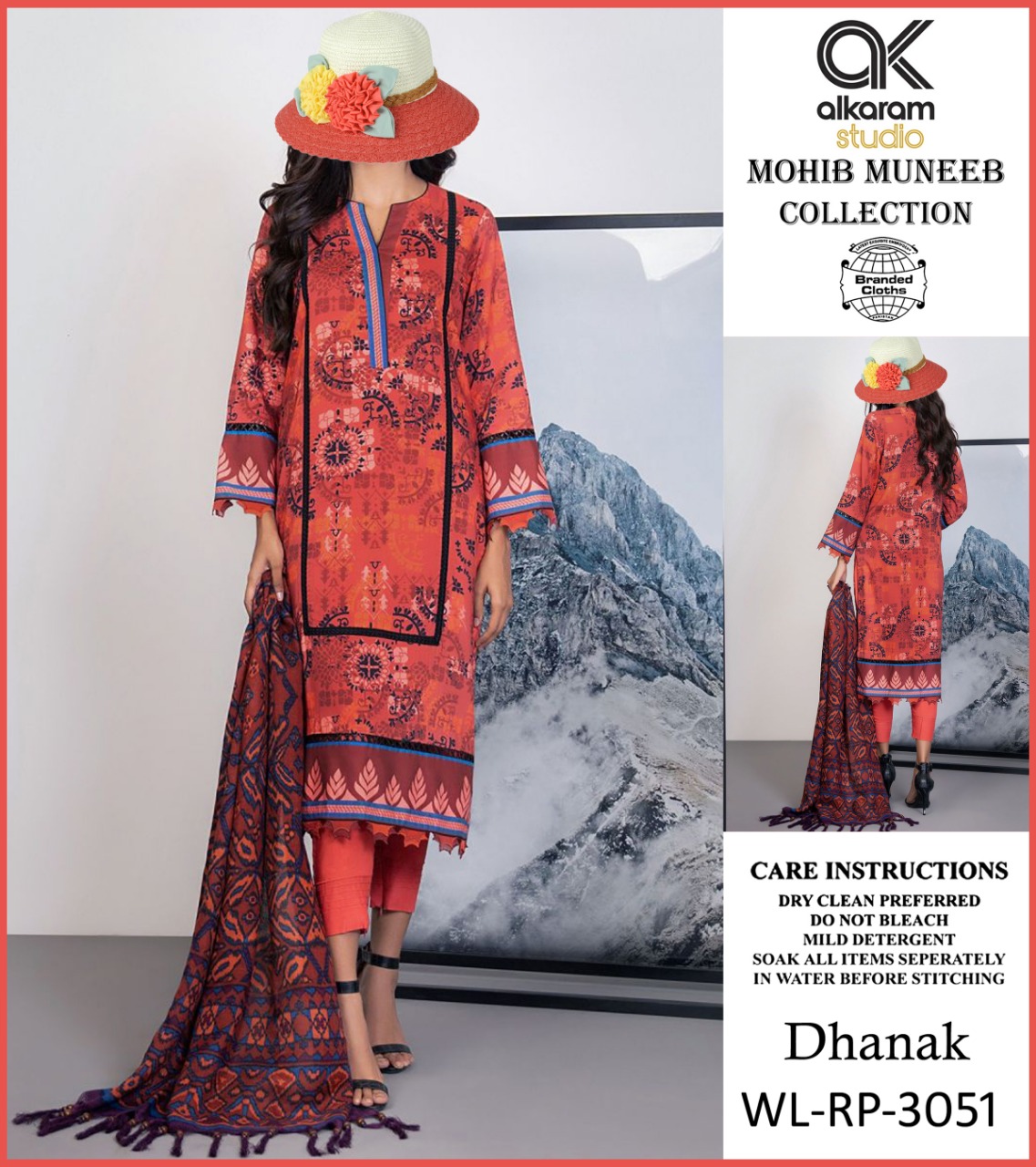 • AL KARAM DHANNAK 3PCS PRINTED WITH PRINTED DHANNAK SHAWL AND PLAIN TROUSERS