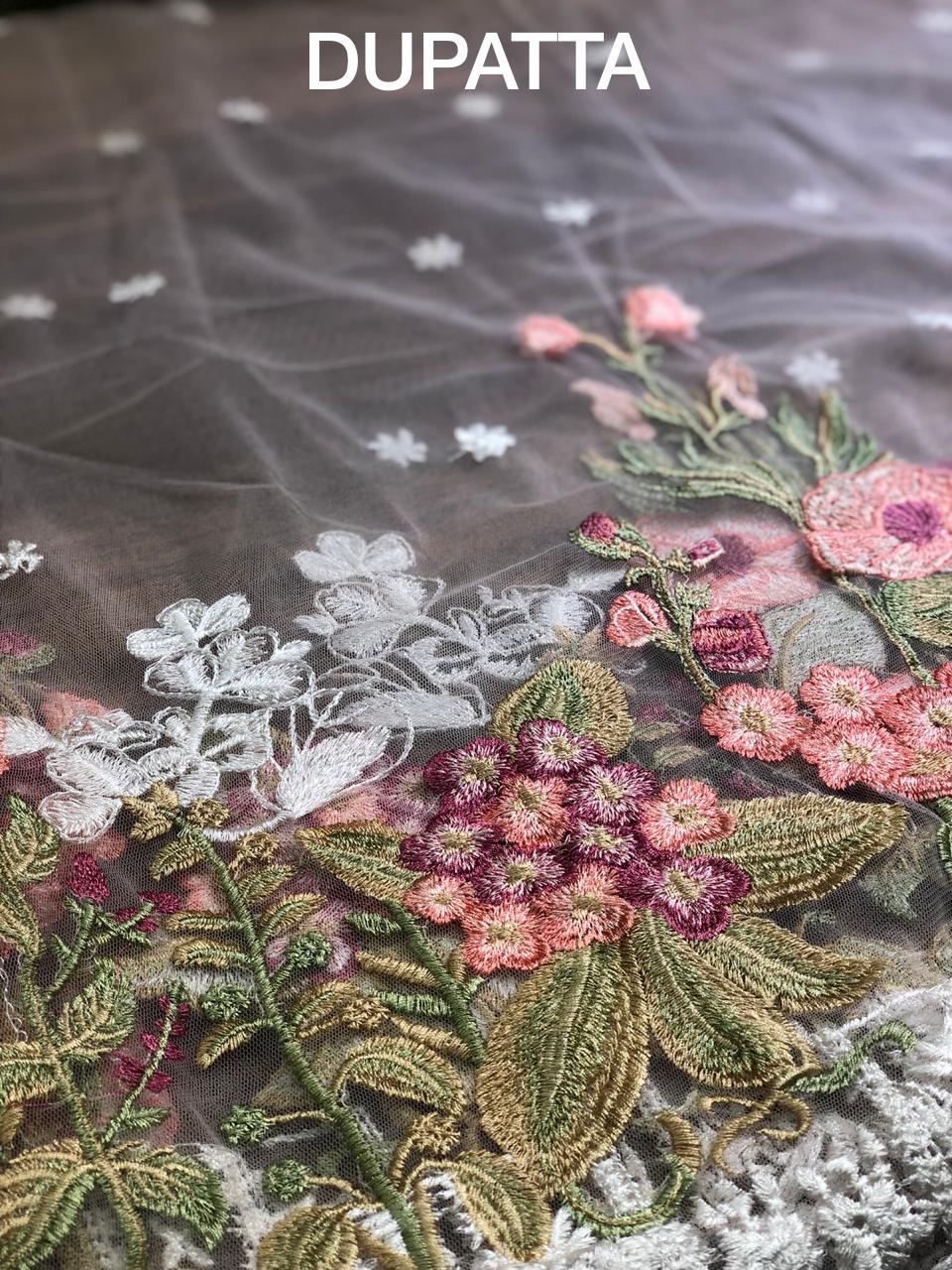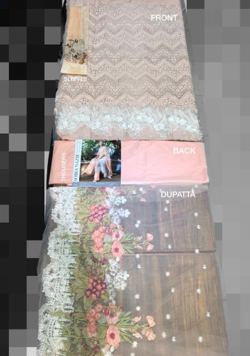 • KING REPLICA SOBIA NAZIR LUXURY LAWN 2019 SCHIFLLI BORING EMBROIDERED FRONT SAME AS ORIGINAL DIGITAL PRINTED SLEEVES. DYED TROUSER. DYED TROUSER. EMBROIDERED BAREEZE NET DUPATA WITH EMBROIDERED PALLUS