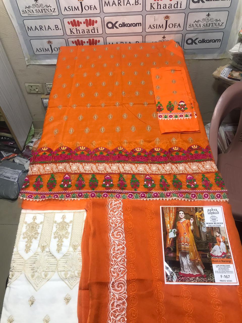 • Zahra Ahmad lawn 3pcs with embroidery shafoon dupatta