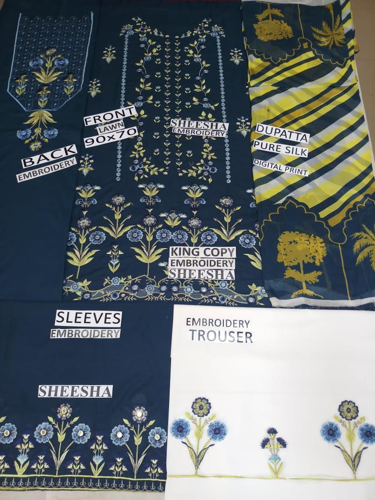 • CRIMSON LAWN WITH SHEESHA EMBRIODERY ON FRONT AND PRINTED SILK DUPATA