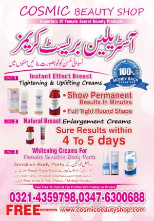 • Vince Breast Tightening cream instantly enhances your breast size by increasing the volume of cell tissues in breasts without any side effects. Now available breast tightening in Karachi which is imported from Australia with 100% money back guarantee. Good bye to cosmetic surgery and use Vince breast tightening cream for making round shape breasts. In this age of globlazation, we provide breast tightening cream online shopping in Pakistan with free home delivery. We are also giving free home service delivery for breast tightening cream in Karachi and all over Pakistan. Now Call For More Information or Orders@03214359798 (Free Delivery In All Pakistan