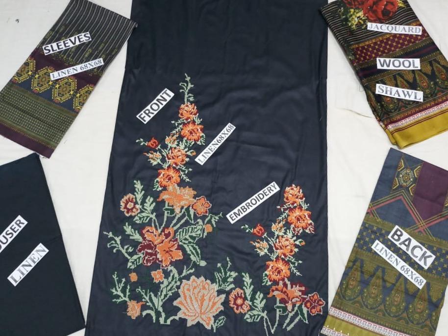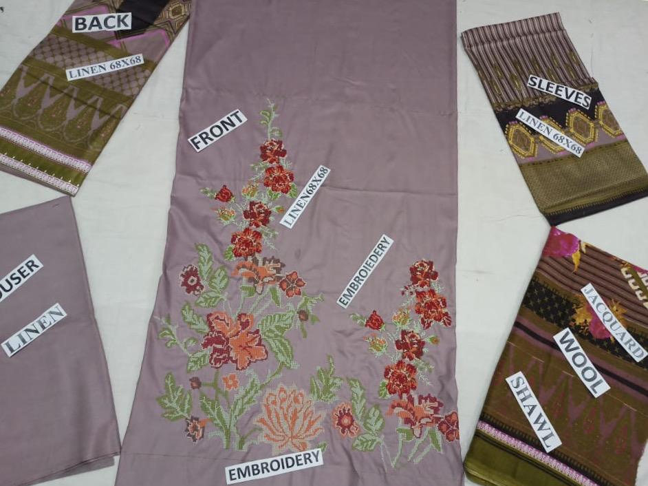 • Fine Dyed Linen Front Full Embroidery & Heavy Daman Embriodery Front.