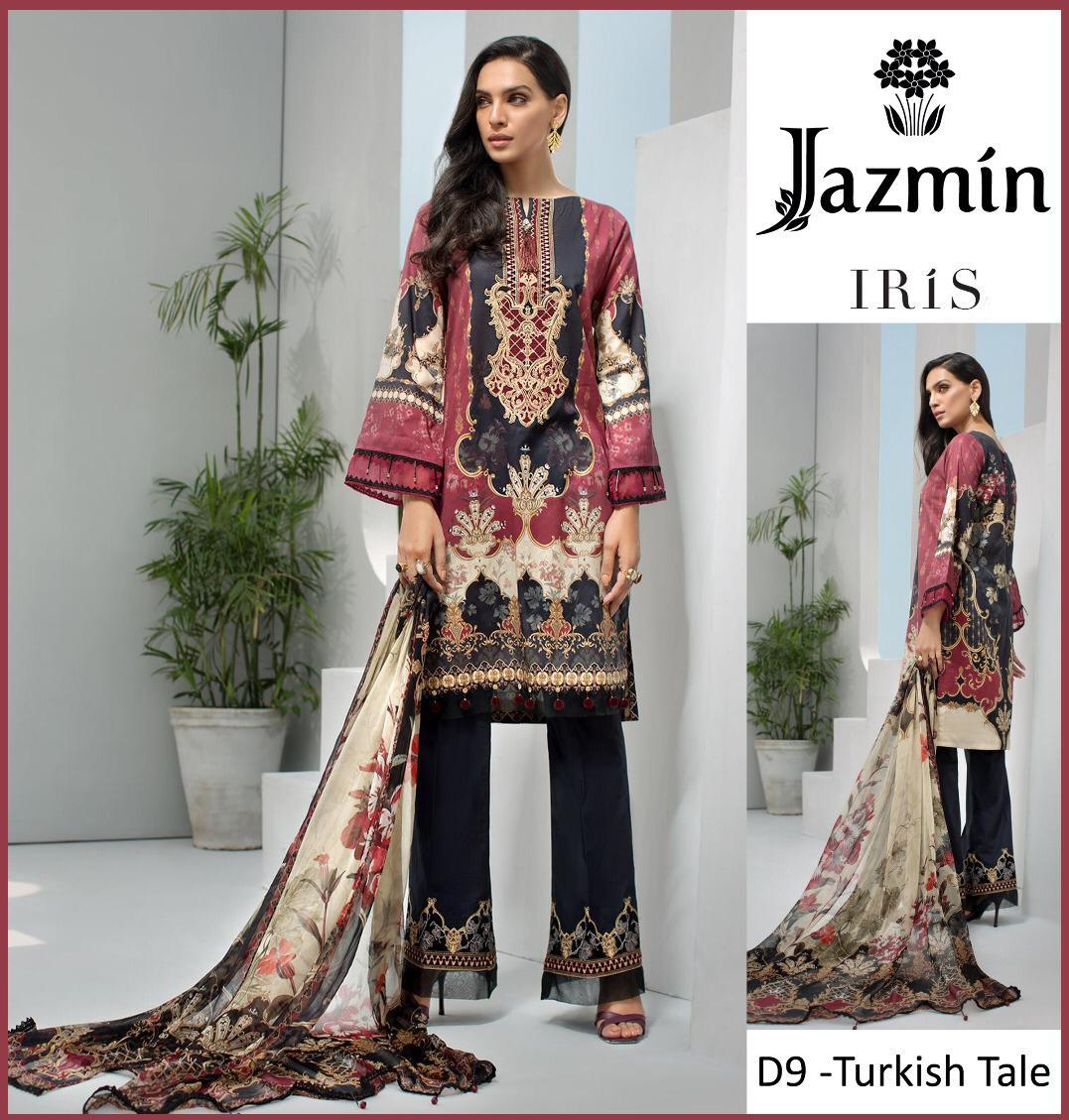 • JAZMIN IN MARINA/TWILL HEAVY GALA EMBROIDERED,EMBROIDERED TROUSER PATCHES AND PRINTED PASHMINA SHAWL