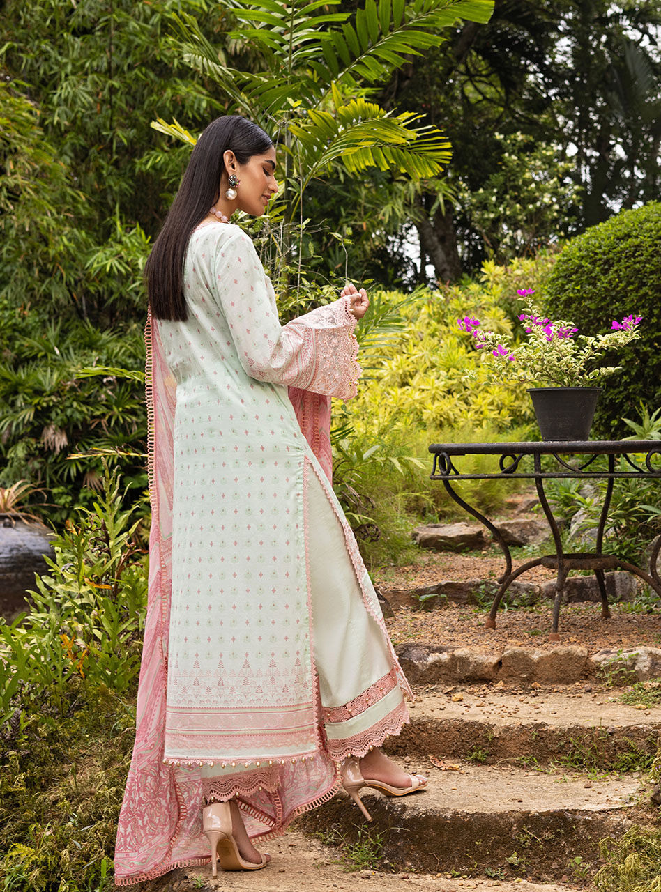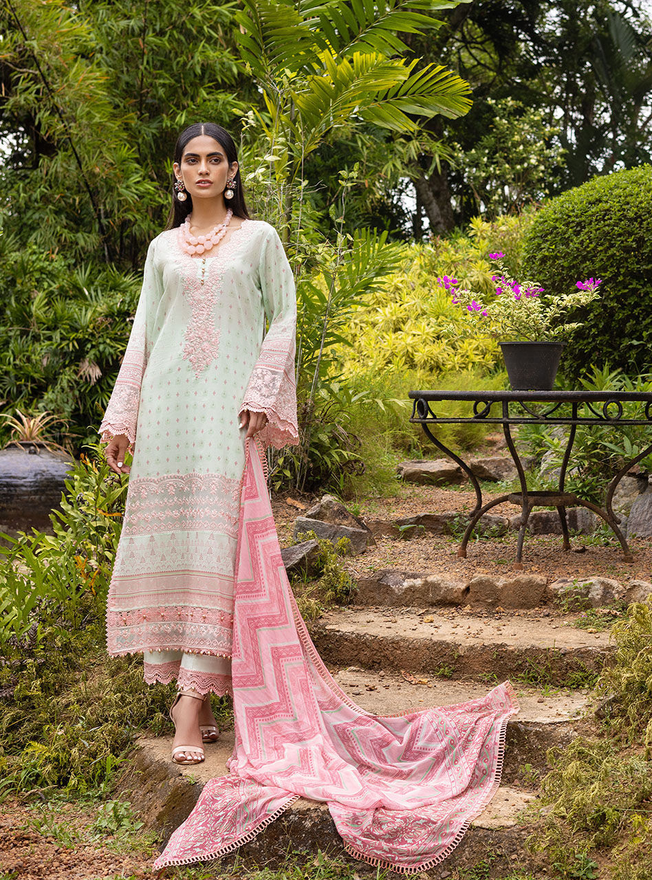 • Printed Shirt Fabric (3.2 meters) Printed Chiffon Dupatta (2.5 meters) Pants Fabric (2.5 meters) Embroidered Neckline on Organza (1 pc) Embroidered Daman Border on Organza (0.75 meters) Embroidered Daman Border on Organza (0.75 meters) Embroidered Sleeves Border on Organza (1.25 meters)